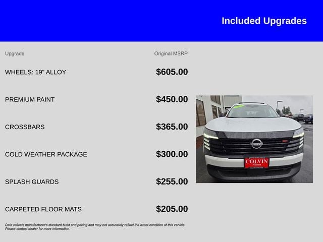 Sales Tax, Title, License Fee, Registration Fee, $250 Dealer Document Fee are additional to the listed price and will be added to the sale price or capitalized cost. All vehicles are subject to prior sale. Please contact the Sales Team to confirm the availability and pricing of all vehicles. Even though all reasonable efforts have been made to ensure the accuracy and totality of Rebates, Credit Rebates, and Incentives, absolute accuracy cannot be guaranteed. To ensure accuracy, confirm the details of the vehicle and what factory rebates you may or may not qualify for with our Sales Team or by visiting the dealership or calling (503) 472-6124. Some incentives and rebates may require financing through Ford Motor Credit or Nissan Motor Acceptance Corp. Chuck Colvin Auto Center is not liable for data that is listed incorrectly. Photos of vehicles are for illustration purposes only.