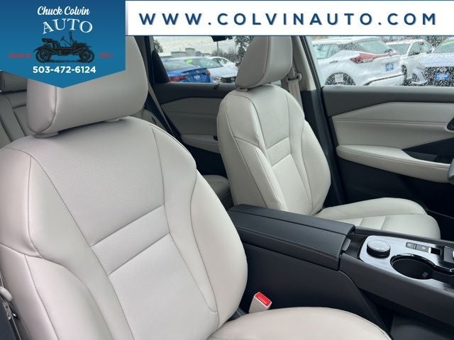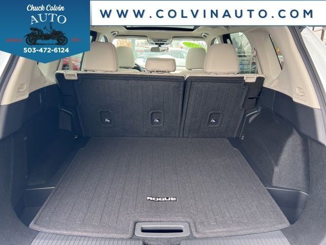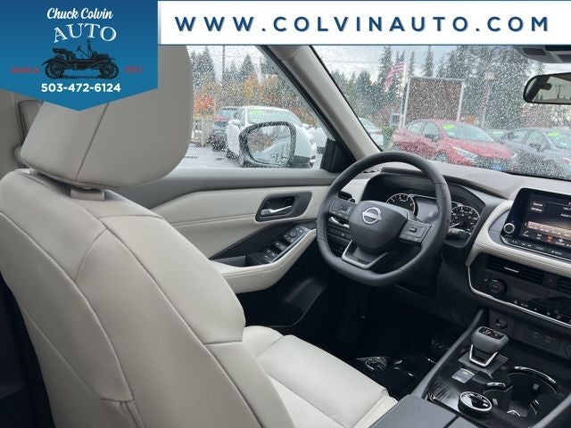 Stepping inside, you'll be greeted by a spacious and well-appointed interior. The Rogue SV comes equipped with a panoramic moonroof, allowing for an abundance of natural light and a sense of openness. The heated steering wheel and front seats, part of the Cold Weather Package, provide added comfort and convenience during those chilly commutes.