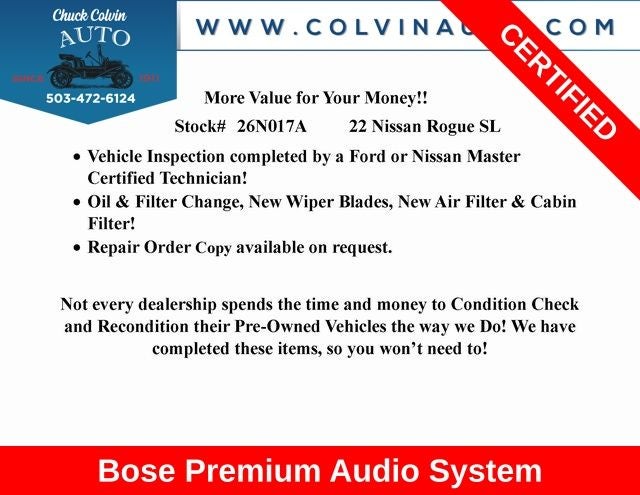 Discover the perfect blend of style, technology, and capability with this meticulously maintained 2022 Nissan Rogue SL. This stunning SUV is ready to elevate your driving experience and exceed your expectations.
